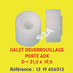 GALET DEVERROUILLAGE PORTE ADX Ref. : 13 19 456013 Catégories: Galets et Contre Galets Marques: Kone Familles: Système Porte Cabine GALET DEVERROUILLAGE PORTE ADX